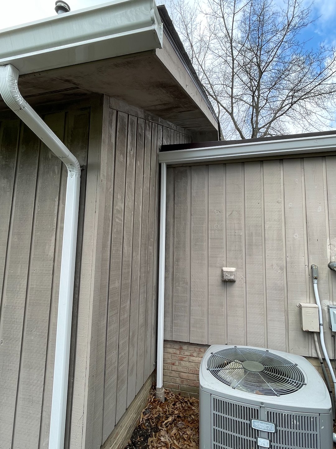 We treated the siding using a controlled soft wash process designed to break down organic growth at the root without disturbing the painted surface. The entire exterior system was cleaned including trim, soffits, fascia, and gutter lines to ensure uniform results across all elevations.
