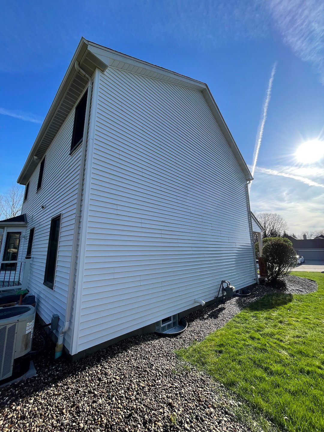Siding is treated with a controlled soft wash that breaks down organic growth where it anchors into the surface.