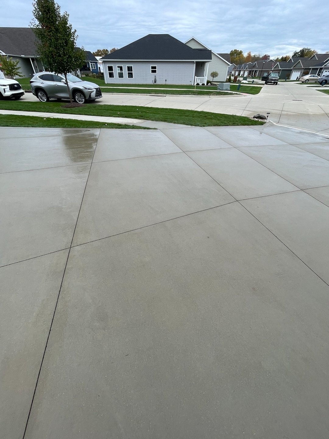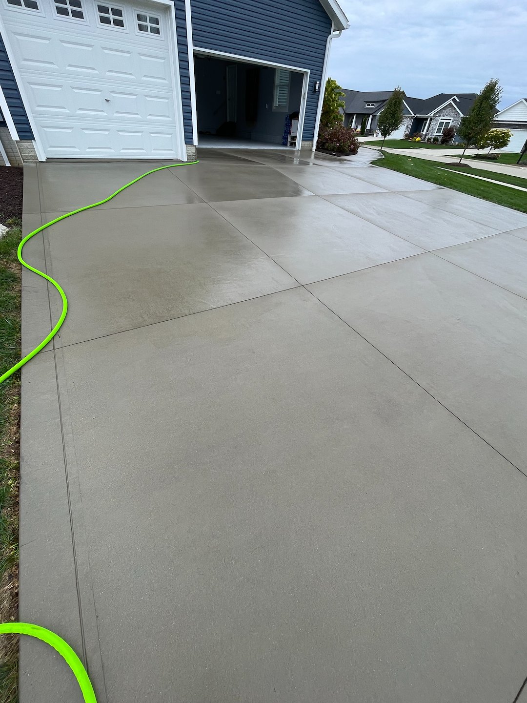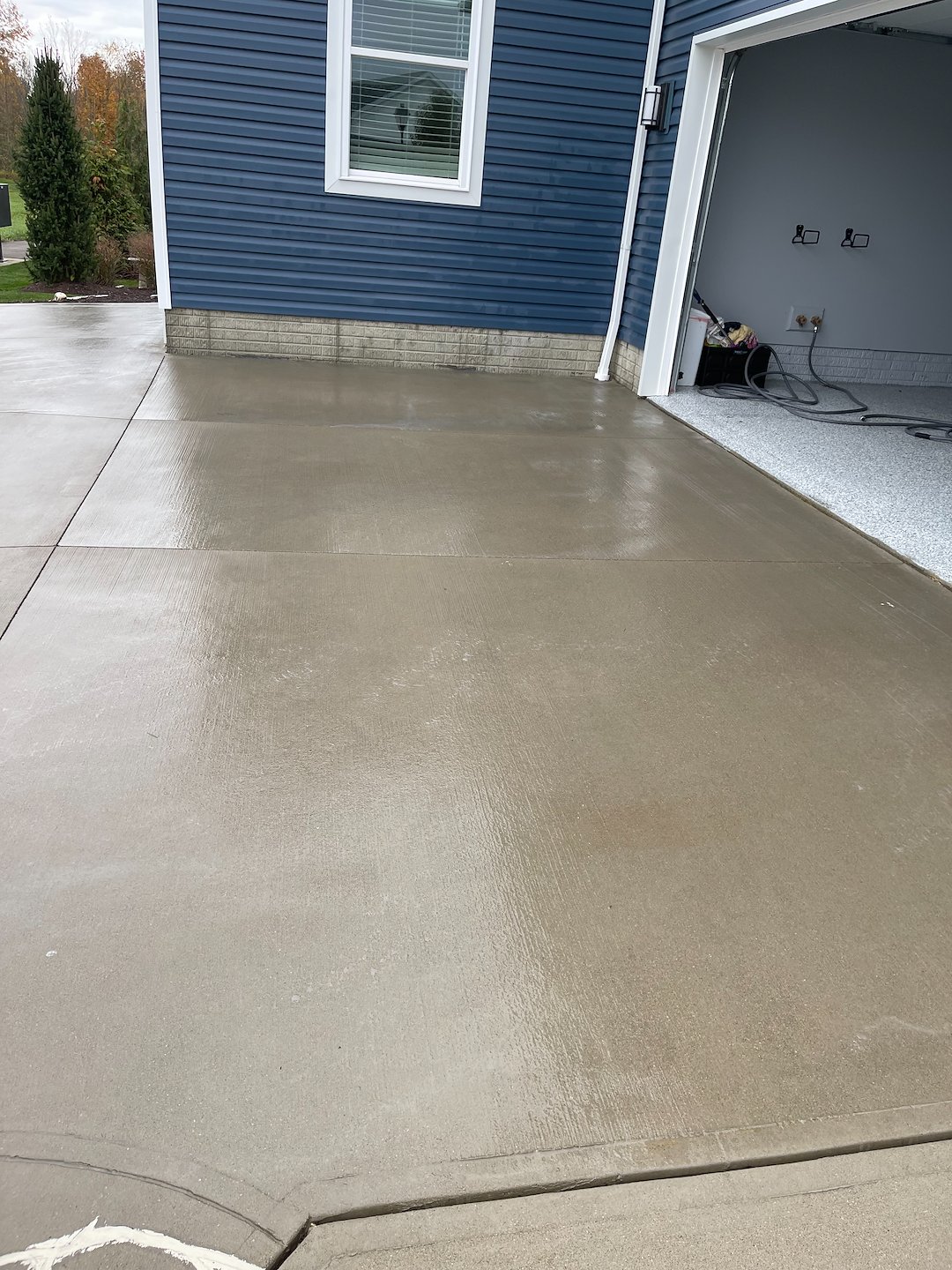 To protect the surface long term we applied our hydrophobic penetrating sealer. This product soaks deep into the concrete instead of sitting on top and repels water oil and salt while allowing the surface to breathe. It prevents future staining cracking and discoloration keeping the driveway looking fresh through every season in Ohio.