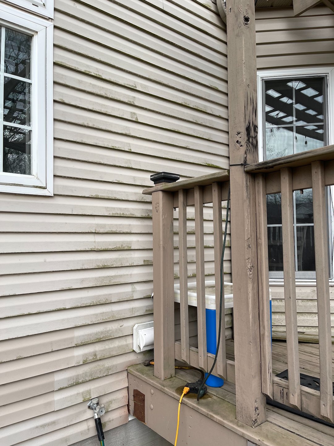 This wasn’t surface level staining. This was layered organic growth that had embedded into the siding over multiple seasons.