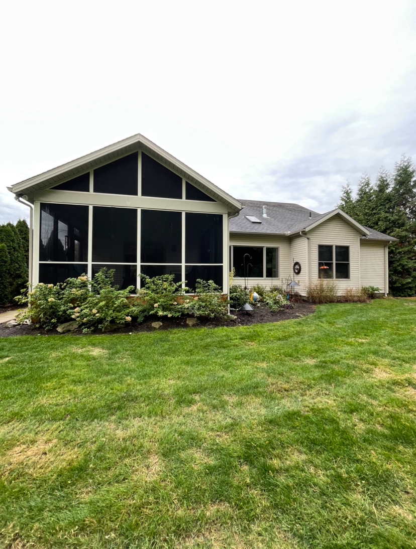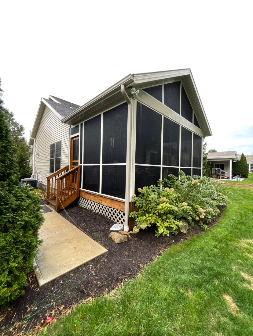 On this home, the soft wash cleaned every part of the siding including the screened sunroom and all outer frames. The property now looks brighter and healthier. The homeowner can enjoy fresh air and worry free relaxation in their clean sunroom once again.