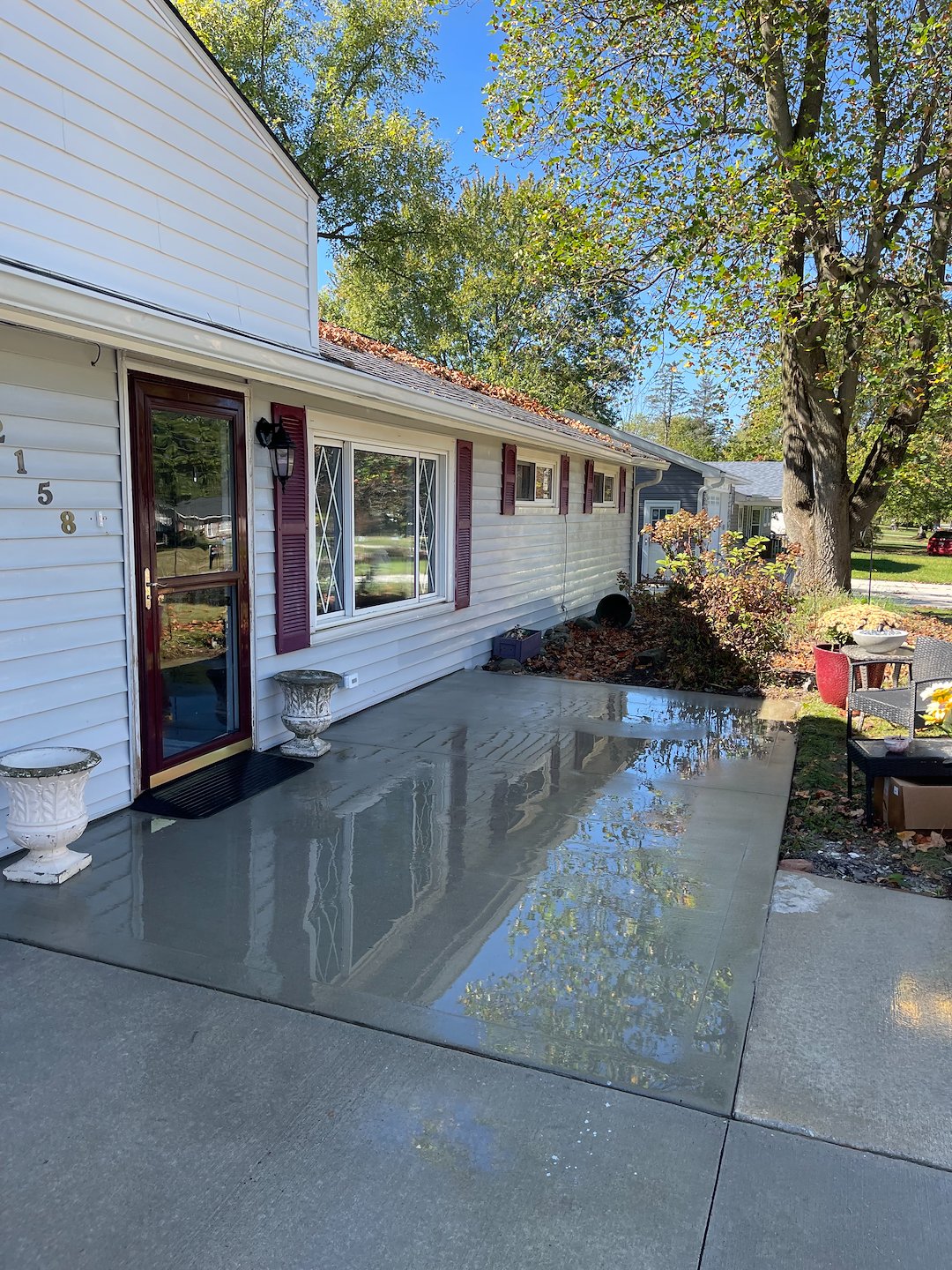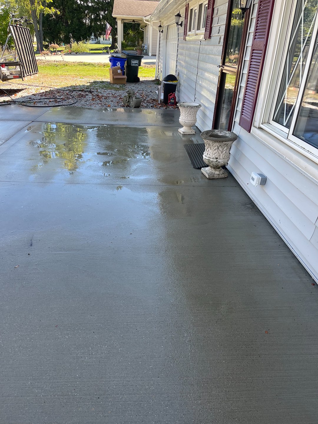 For concrete, driveways, and patios, we use controlled pressure and surface cleaners that prevent swirl marks and uneven cleaning. For siding or trim, we apply a gentle rinse to protect paint and caulking.